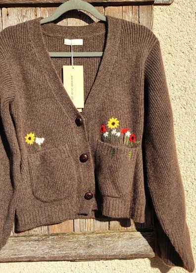 Cardigan en pur cachemire de Mongolie avec broderie Tissu certifié Oeko-Tex® Standard 100